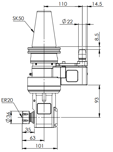 ◎?SK50-ER20 90° Angle Head-Compact (AHD Type)